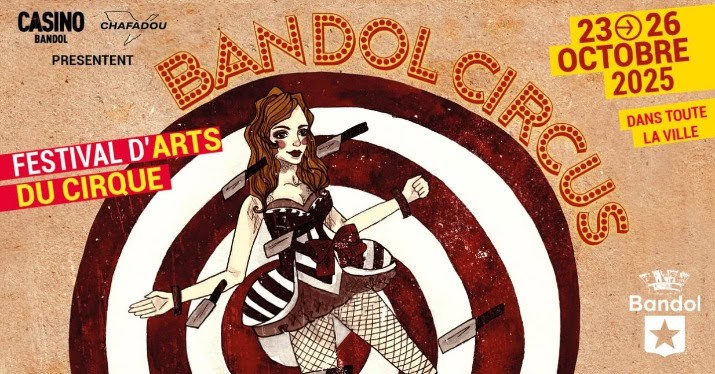 Festival d’Arts du cirque. Dates : Du 23 au 26 octobre. Renseignements : 04 94 29 41 35. Organisé : par la ville de Bandol, le Casino de Bandol et Chafadou Productions. Lieu : Centre ville.