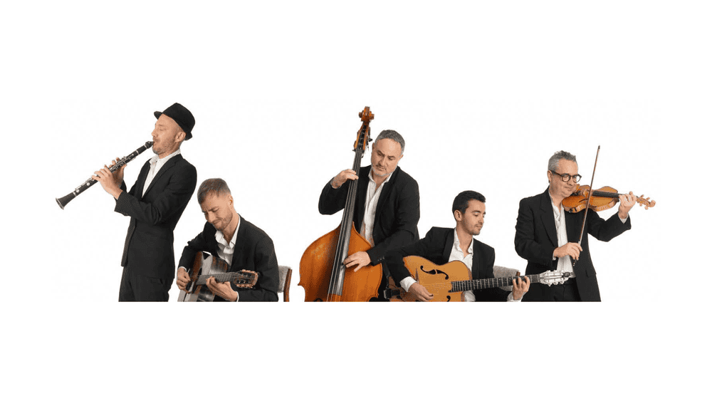 Les musiciens : David Bergeron (contrebasse) ,Pierre Zeinstra (guitare), Benjamin Marciano (guitare), Frédéric Ladame (violon), Sylvain Congès (clarinette).Fleuron de la nouvelle scène jazz marseillaise, Basilic Swing démontre que l’on peut faire du neuf avec du vieux. Ce quintet s’inspire des musiques traditionnelles d’Europe de l’Est et du jazz américain pour distiller une énergie musicale empreinte d’émotion.Fusion de jazz manouche, musique klezmer et tzigane. Un quintet magique : deux guitares, un violon, une contrebasse et une clarinette et une entente parfaite entre les musiciens charment le spectateur.