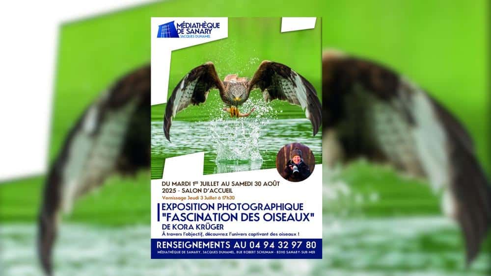À travers l’objectif, découvrez l’univers captivant des oiseaux ! Date : Du 01/07 au 30/08/2025. Entrée libre. Renseignements : 04 94 32 97 80. Lieu : Médiathèque Jacques Duhamel.