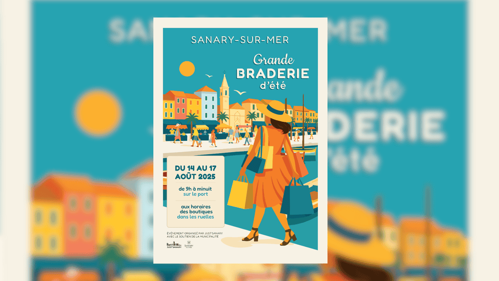 Just’Sanary, en partenariat avec la Ville de Sanary-sur-Mer, organise une grande braderie estivale.Venez nombreux profiter de bonnes affaires et d’une ambiance conviviale !