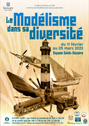 Découvrez de nombreuses maquettes réalisées en grande partie par Le Club de Modélisme de Sanary. Vous pourrez admirez des bateaux en bouteilles, bateaux de la Royale (marine de guerre), trains, avions, hélicoptères, véhicules militaires et civils, maquettes du patrimoine construites en allumettes, jeux de bataille navale, une pendule inventée par Jules Verne et de nombreux objets anciens de la marine. Dates : Du 11/02 au 05/03/2023, tous les jours. Du mardi au vendredi de 14h00 à 18h30 et le week-end de 10h00 à 12h00 et de 14h00 à 18h30. Entrée libre. Renseignements : 33 (0)4 94 74 01 04. Lieu : Espace Saint Nazaire.