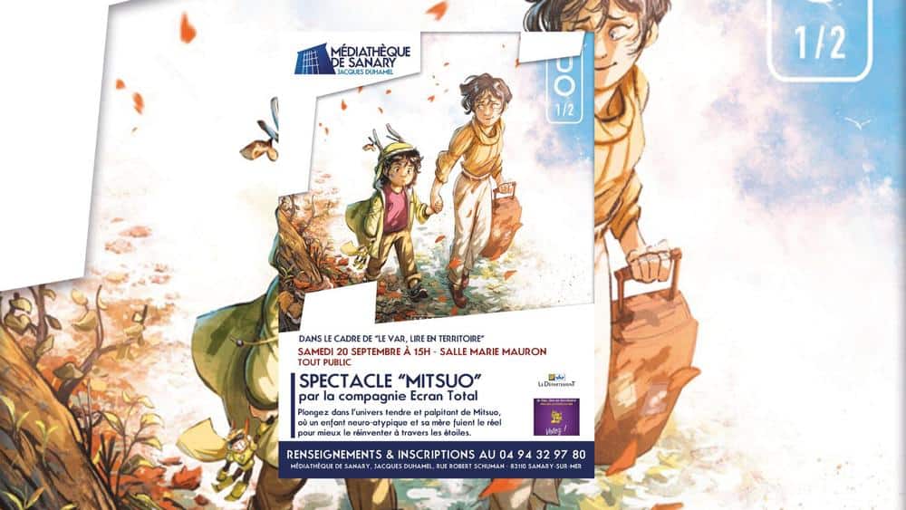 Par la compagnie Ecran Total.Dans le cadre de « Le Var, lire en territoire »Plongez dans l’univers tendre et palpitant de Mitsuo, où un enfant neuro-atypique et sa mère fuient le réel pour mieux le réinventer à travers les étoiles.