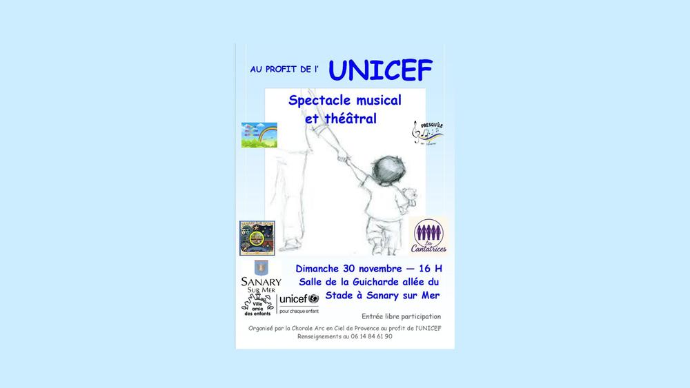 Organisé par la chorale Arc-en-Ciel en Provence au profit de l’UNICEF.Au programme, il est prévu 2 heures de musique, de chant choral et de théâtre au cours desquelles interviendront :