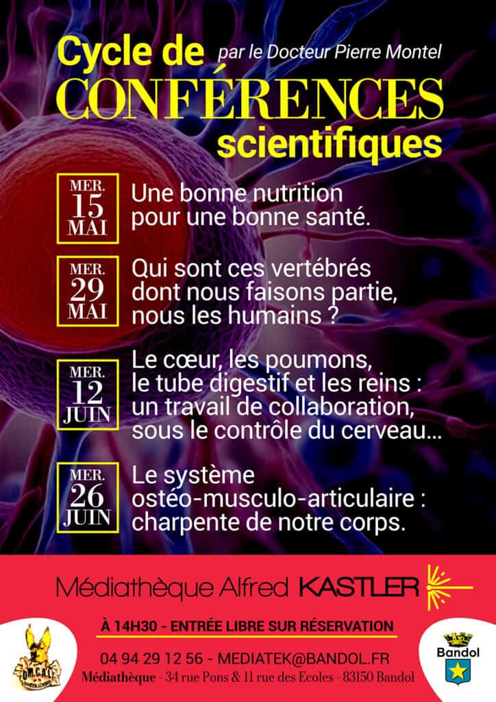 Conférence scientifique présentée par le Docteur Pierre Montel. Date : 15 Mai à 14h30. Entrée libre sur réservation au 04 94 29 12 56. Lieu : Médiathèque.