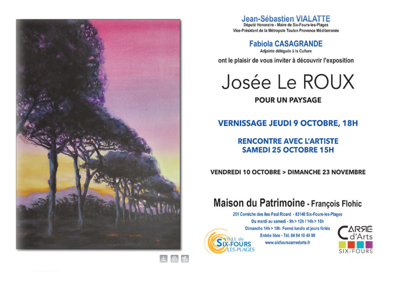 Vernissage de l’exposition pour un paysage : Date : Jeudi 9 octobre à 18h.