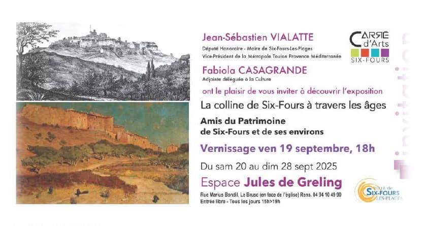 Dates Expo : du 20 au 28 septembre 2025. Entrée libre. Renseignements : 04 94 10 49 90. Lieu : Espace Jules de Greling.
