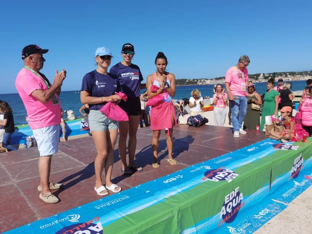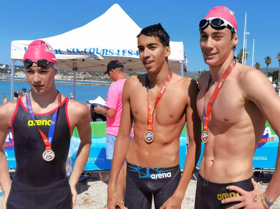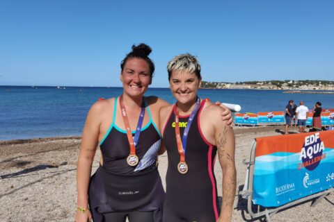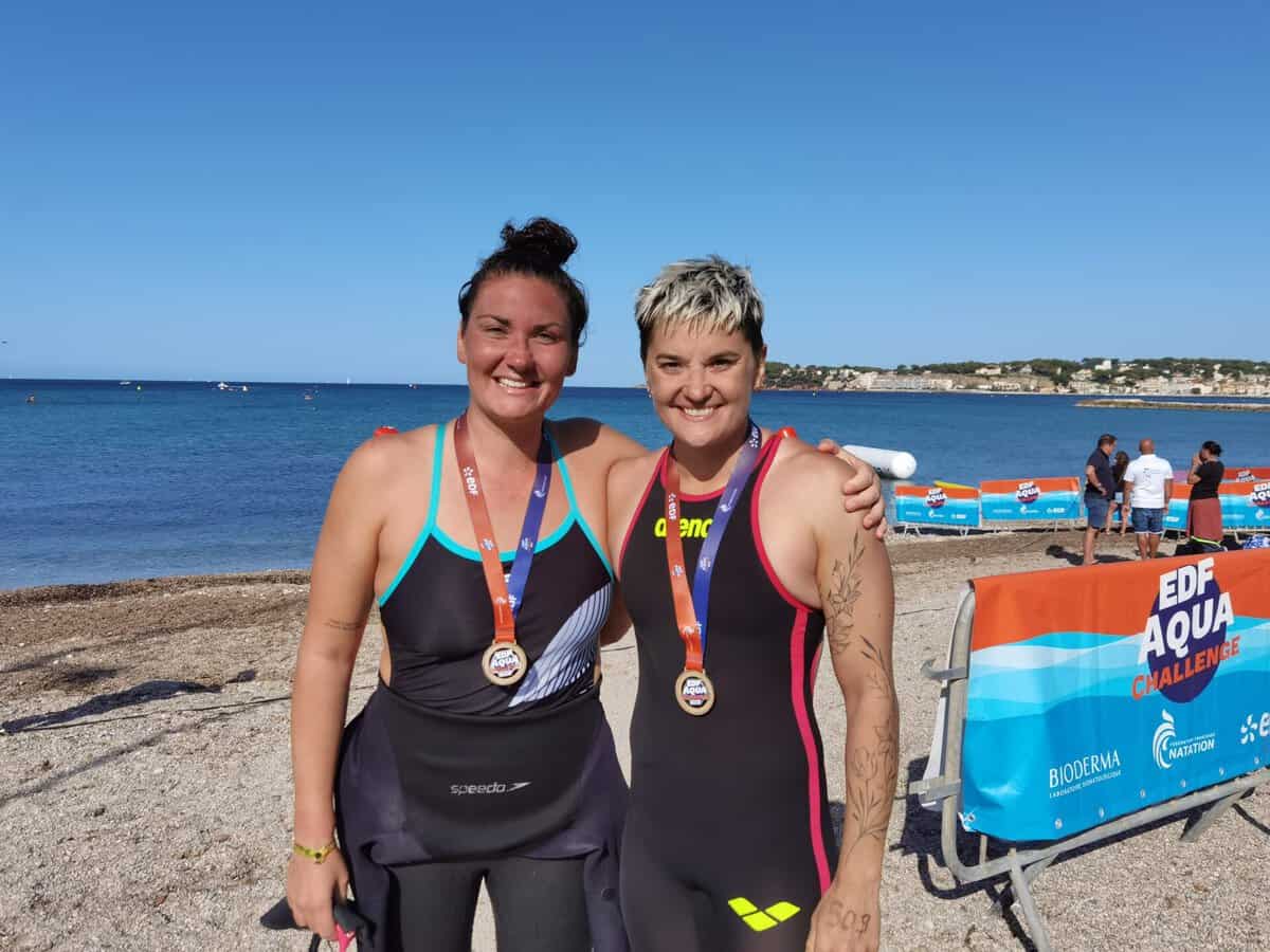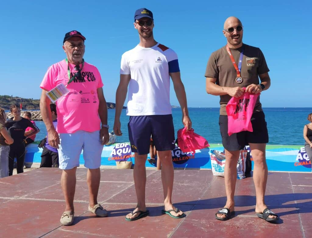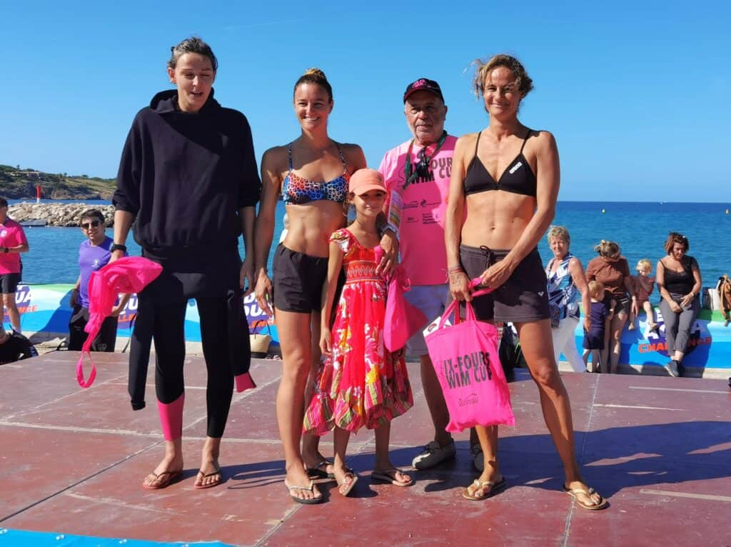 La Six-Fours Swim Cup est aussi l’occasion de croiser des nageurs aux capacités impressionnantes comme en témoignent les 3 kilomètres de la Coupe de France organisés au départ de la plage. Une épreuve survolée par Gabriel Zacharia et Aléxis Armand. Les deux compères du Pays d’Aix Natation ont fait jeu égal pour terminer au sprint, au bout de l’effort en moins de 45 minutes ! Les sœurs Rasolonjatovo, Alice et Lucille, âgées de 13 et 12 ans, leur emboîtent le pas : “on a nagé en prenant chacune un relais, comme le font les nageurs italiens, la première trace un sillon, la seconde s’y engouffre, elle s’économise un peu avant de prendre à son tour la tête du convoi”. Tactique et technique, rien n’a manqué à cette course spectaculaire. Et la participation de Damien Joly, multiple champion de France longue distance, n’aura été que la cerise sur le gâteau d’un événement haut en couleurs.